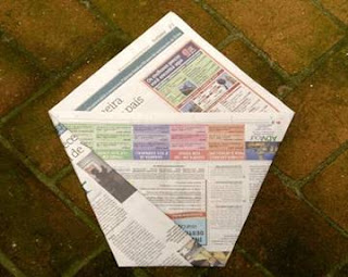 Você pode usar uma, duas ou até três folhas de jornal juntas, para que o saquinho fique mais resistente. Tudo no origami começa com um quadrado, então faça uma dobra para marcar, no sentido vertical, a metade da página da direita e dobre a beirada dessa página para dentro até a marca. Você terá dobrado uma aba equivalente a um quarto da página da direita, e assim terá um quadrado.
